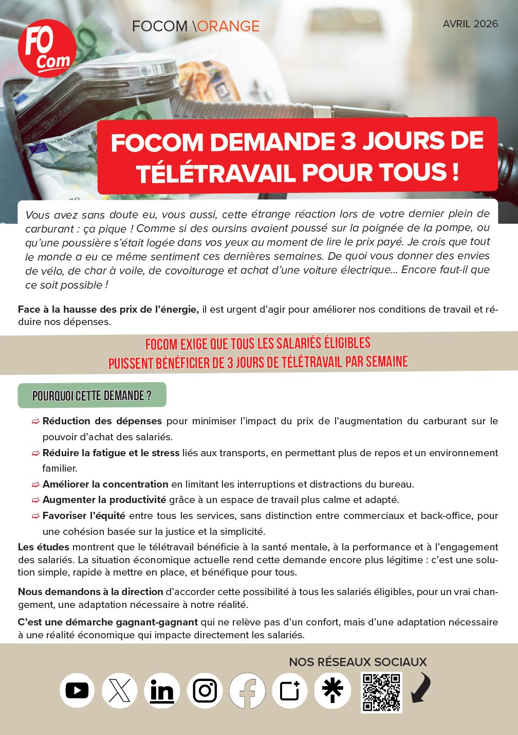 [Lire le tract : FOCom demande 3 jours de télétravail pour tous]