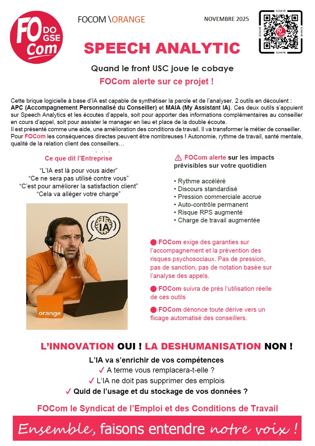 Pour FOCom les conséquences directes peuvent être nombreuses ! Autonomie, rythme de travail, santé mentale, qualité de la relation client des conseillers…